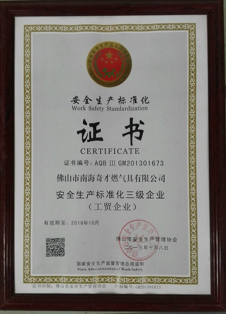 主頁 > 企業榮譽 > 企業榮譽 > 安全生產標準化三級證書